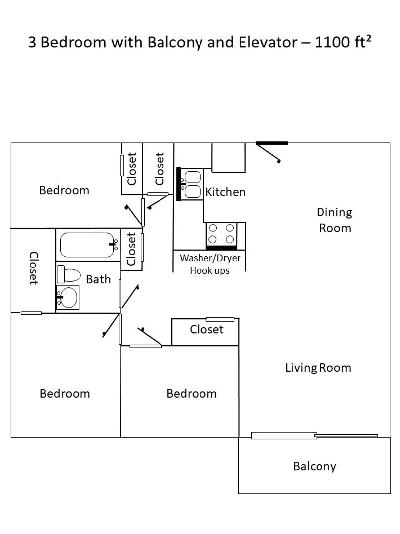 3 bedroom - elevators in building - 2nd floor unit with balcony!